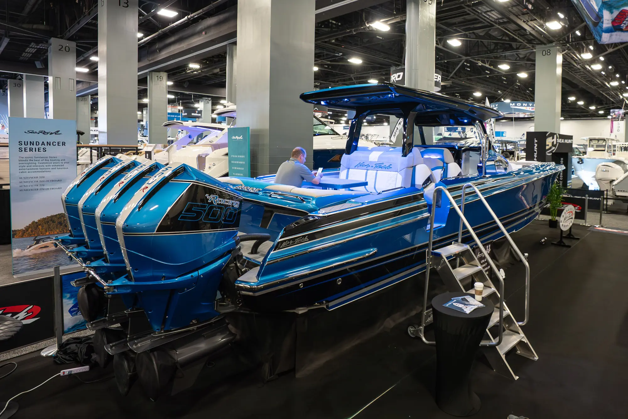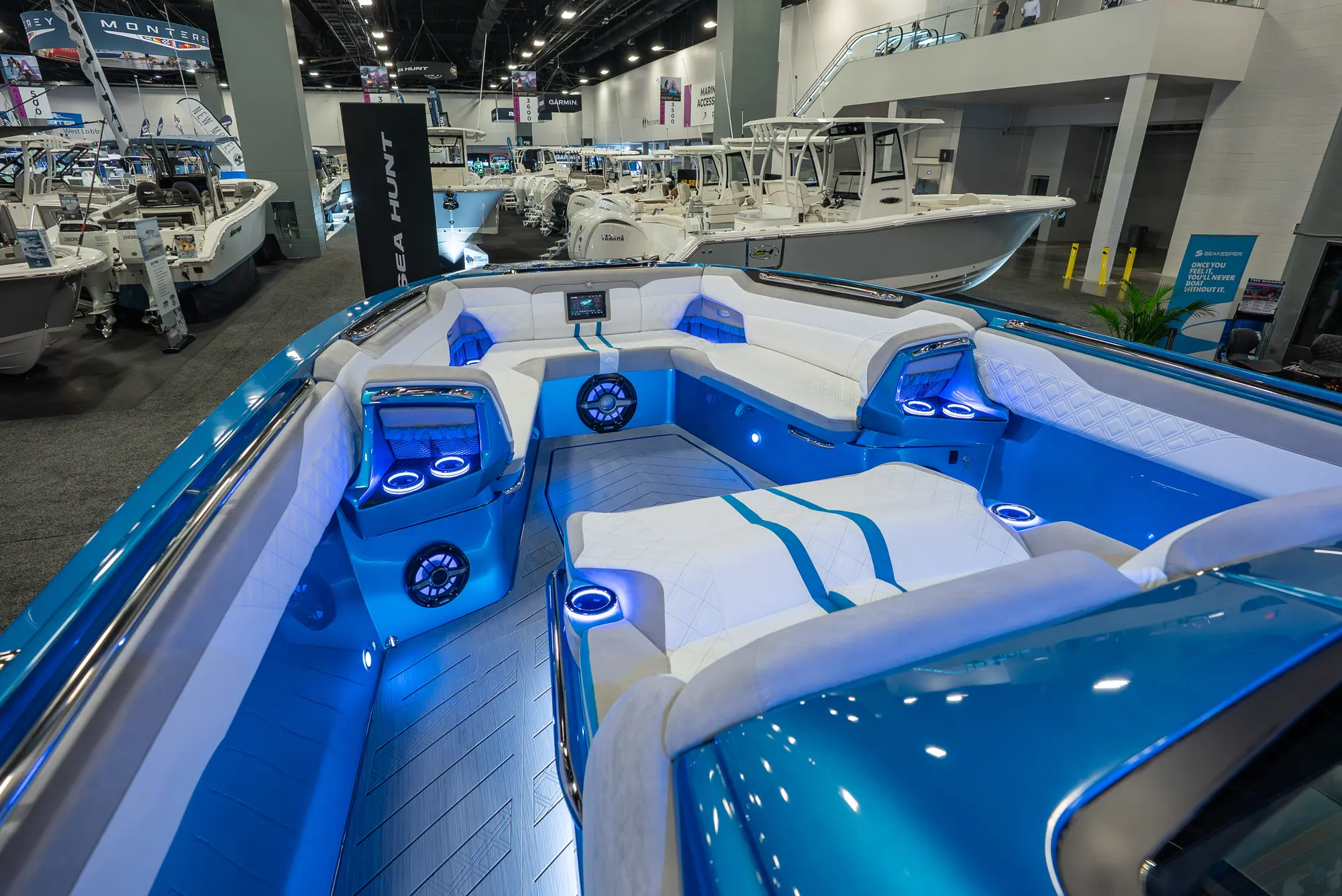 At the aft, U-shaped seating creates a more social and functional layout, making the boat equally capable of high-speed runs and sandbar gatherings. The widened footprint enhances deck flow and overall comfort, making this one of the most well-balanced Nor-Tech layouts to date.